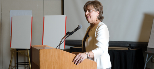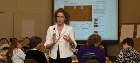 Dr. Deborah Cleeter, Leadership Consultant, addressing the Fellows.Deborah Cleeter, EdD, MSN, GNLA Leadership Consultant, offers, “The Academy has established an experiential framework for the Geriatric Nursing Leadership Fellows to develop their personal skills, create a significant impact on patient care outcomes, lead interdisciplinary teams, and effect organizational change within their institutions.”The inaugural Geriatric Nursing Leadership Academy was launched in June 2008 with the first workshop, “The Leader Within: Defining Your Passion.” A subsequent workshop was held in February 2009. The Academy will culminate in a presentation of participants’ completed projects at Sigma Theta Tau International’s Biennial Convention in November 2009.