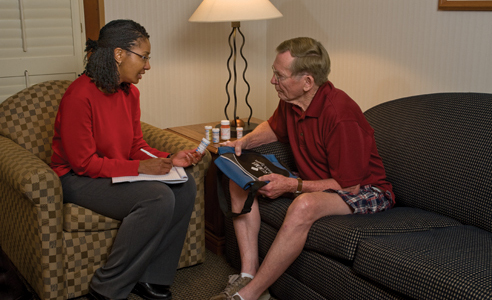 Kathy Wright works with an older adult to avoid medication errors.