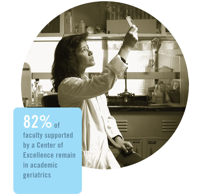 The Centers of Excellence have increased the prominence of geriatrics institutionally and nationally. Sixty-eight percent of all geriatrics fellows and 71 percent of all advanced fellows in the United States were trained at Hartford Centers of Excellence. Eighty-two percent of faculty supported by a Center of Excellence remain in academic geriatrics.