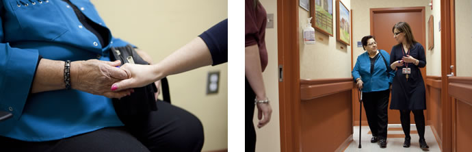 (Above) Rita Haverkamp, RN, MSN, CNS, a Depression Care Manager at Kaiser Permanente, San Diego, CA, who was involved in the original IMPACT trial, sees a patient at Kaiser Permanente, San Diego, CA whose medication for depression has failed (below).