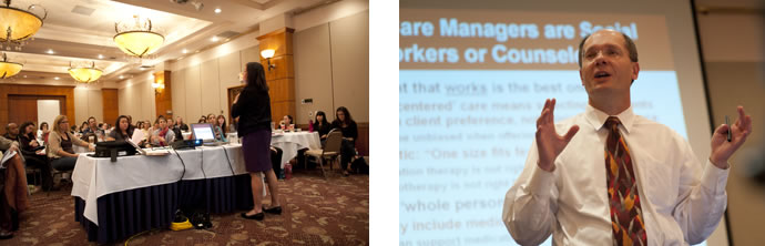 Rita Haverkamp (above, left ) and Dr. Jürgen Unützer (above, right) lead a training session on implementing the IMPACT model for the Los Angeles County Department of Mental Health.