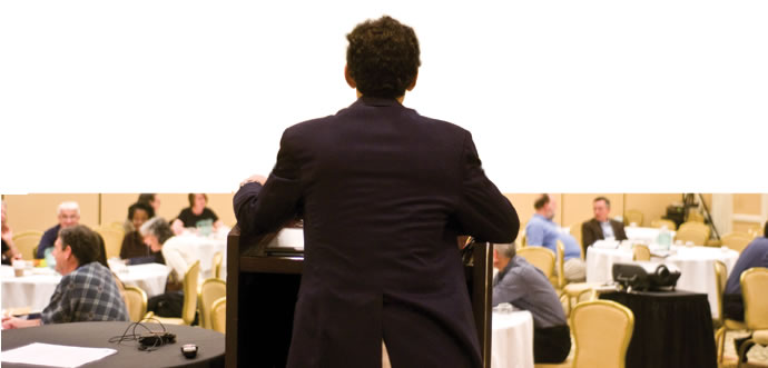 (Top) Laura Mosqueda, MD, Director, Program in Geriatrics, University of California, Irvine and ADGAP Co-Chair, putting her Leadership Scholars training to work in the community as she discusses elder abuse investigation at the Orange County, California Sheriff’s Training Facility.(Below) C. Seth Landefeld, MD, Chair, Department of Medicine, University of Alabama, Birmingham, at the 2009 ADGAP Leadership Retreat.