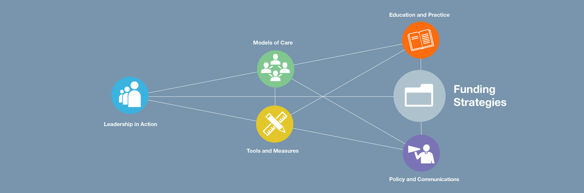 As we worked through our strategic planning process, we realized that no single grantmaking approach would make the kind of impact needed to drive the large-scale, systemic practice change required to improve care for older Americans. The five funding portfolios we created represent a convergent approach to transform the way health care is delivered to older adults by developing and advancing the best evidence-based models that bring together interdisciplinary teams of health professionals; ensuring that patients and their families are an integral part of the health decision-making process; realigning incentives to reward value, not volume; and supporting policies, regulations, and a health care infrastructure that promote better care. On the pages that follow, you will learn more about the five interconnected grantmaking areas that support our mission: