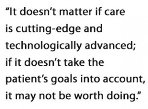 Based on a perverse set of metrics, the Philadelphia oncologist was offering technically the “best” care America had to offer. Yet this good care was not best for me. It wouldn’t give me health. Instead, it might take away what health I had. It doesn’t matter if care is cutting-edge and technologically advanced; if it doesn’t take the patient’s goals into account, it may not be worth doing.