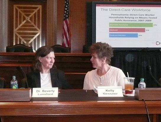 So on Thursday last week, the Eldercare Workforce Alliance put together a briefing session for senate staff to make a full court press for the value of geriatric education investments. The Alliance used its key strengths--the breadth of its coalition (family caregivers, direct care workers, nurses, and physicians) and the power of the stories of those who care for older Americans. The speakers included:
