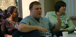 A trainee asks a question during the CRIT retreat at the University of South Carolina.Most encouraging is that 89 percent of the chief residents participating in the retreats went on to institute action projects.