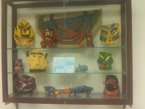 for residents). They invited me to attend. The minister was there, and staff set up pictures of John on a table with flowers. The head of marketing put together a slide show of photos of John with staff and residents and in his pottery class. The pottery instructor also designed a glass display of his artwork. Many residents and staff attended the memorial service, and several people spoke of their fondness for John and told stories about his antics. I was so surprised and very pleased that in the last year of my uncle’s life he had found new friends and discovered a new hobby, while receiving good quality nursing care.