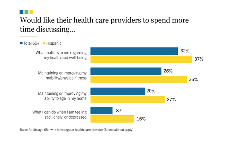 37% of Hispanic older adults reported wanting their health care providers to spend more time discussing what matters to their health and well-being, compared to 32% of all older adults.