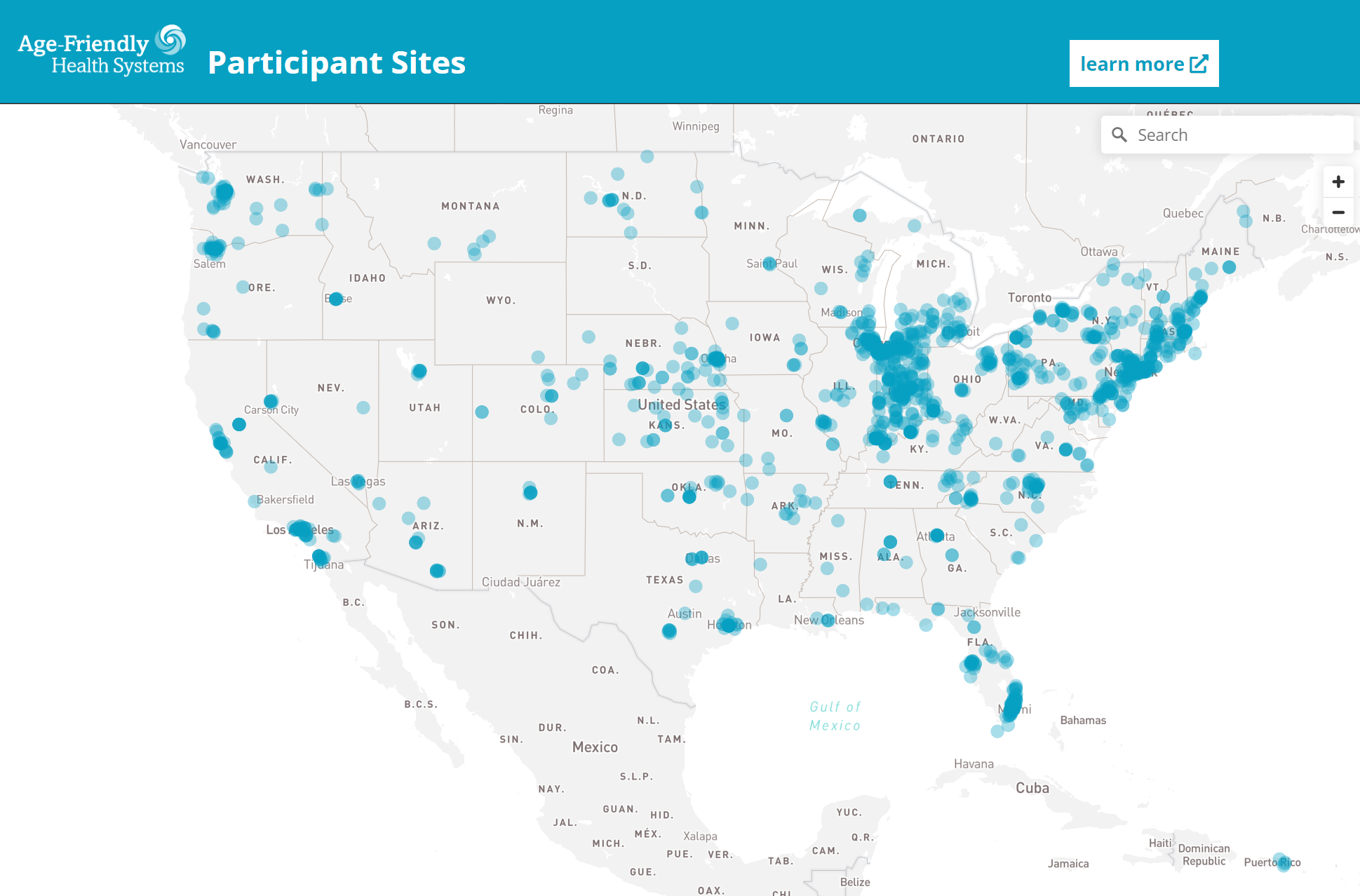 Download a spreadsheet of all recognized Age-Friendly Health Systems across levels, including addresses, and go to an interactive map of recognized sites.